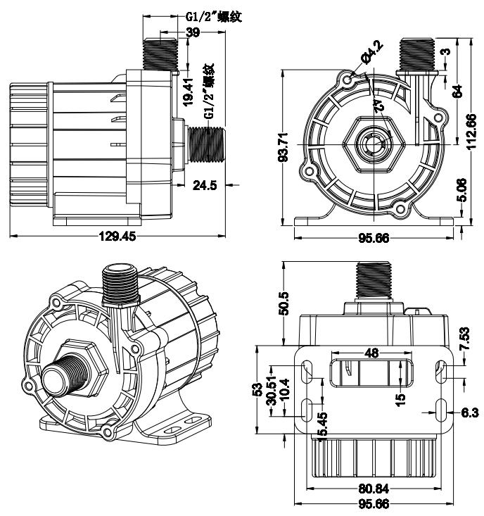 注意:本产品不具备自吸功能,因此在安装时,需要保证压盖型腔内具有足够的水,即安装时需要保证水泵中心位置低于水箱内液面,以保证水泵能够正常运行!
